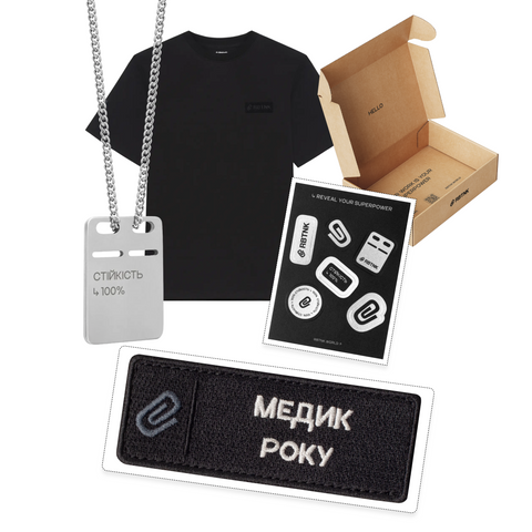 Подаруй своєму Медику чи Медикині святковий бокс кращого року. В боксі він чи вона знайдуть особливу футболку, жетон з суперсилою, крутий стікерпак та шеврон, який він чи вона можуть носити прямо на футболці, а може на сумці.